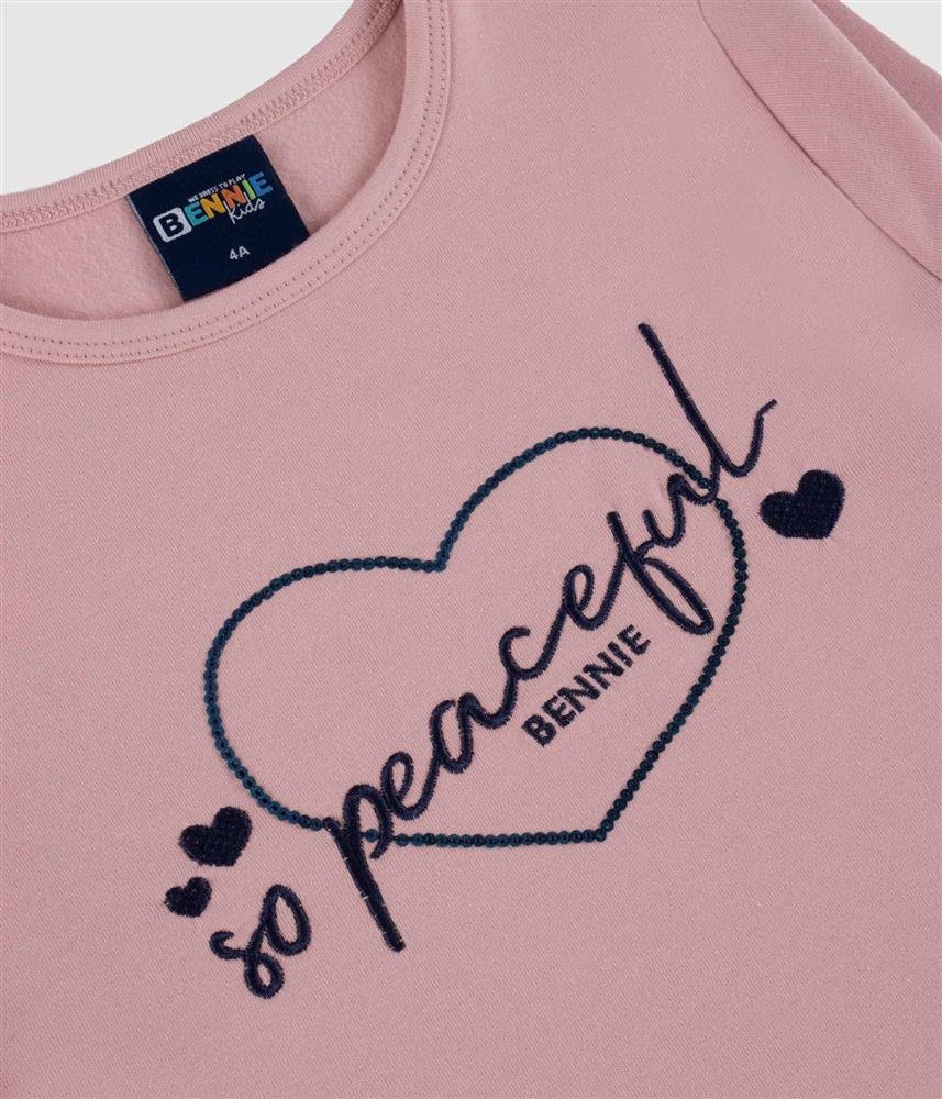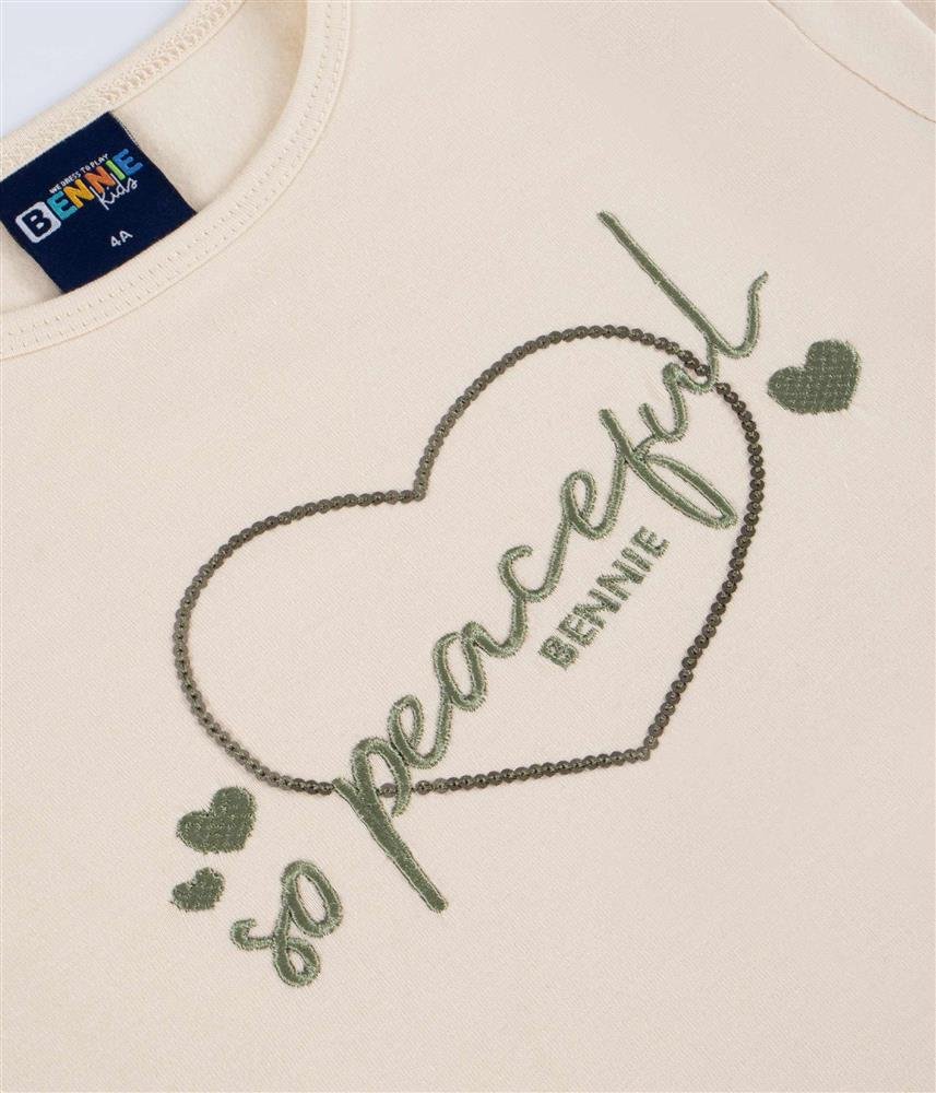 Na frente da camisola um bodado leve e discreto. O pormenor do coração em lantejoulas dá brilho à peça, tornando-a mágica.