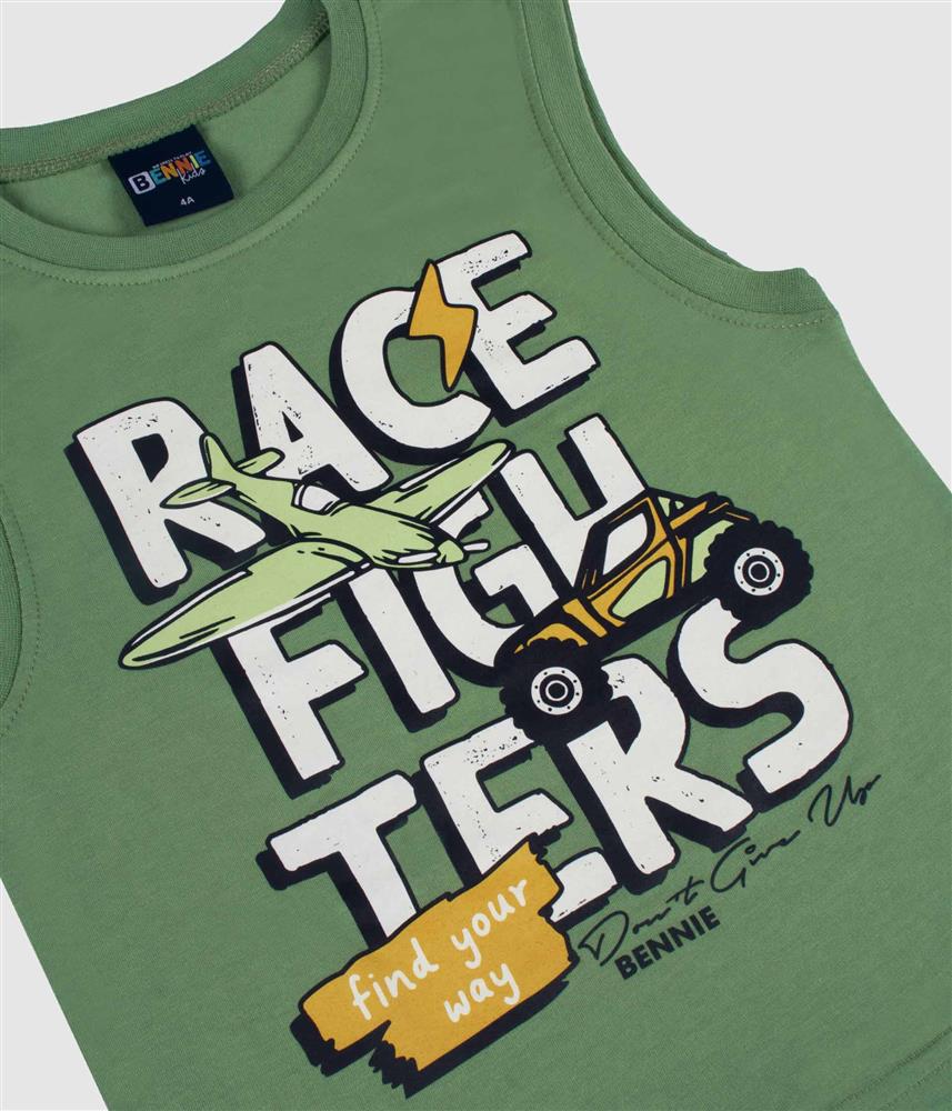 Singlete em jersey de algodão leve e macio, ideal para os dias quentes de verão. O design destaca-se pelo estampado frontal dinâmico, inspirado na energia das pistas.