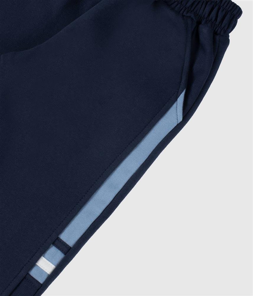 Na calça, encaixes laterais em contraste que completam o conjunto de forma harmoniosa.