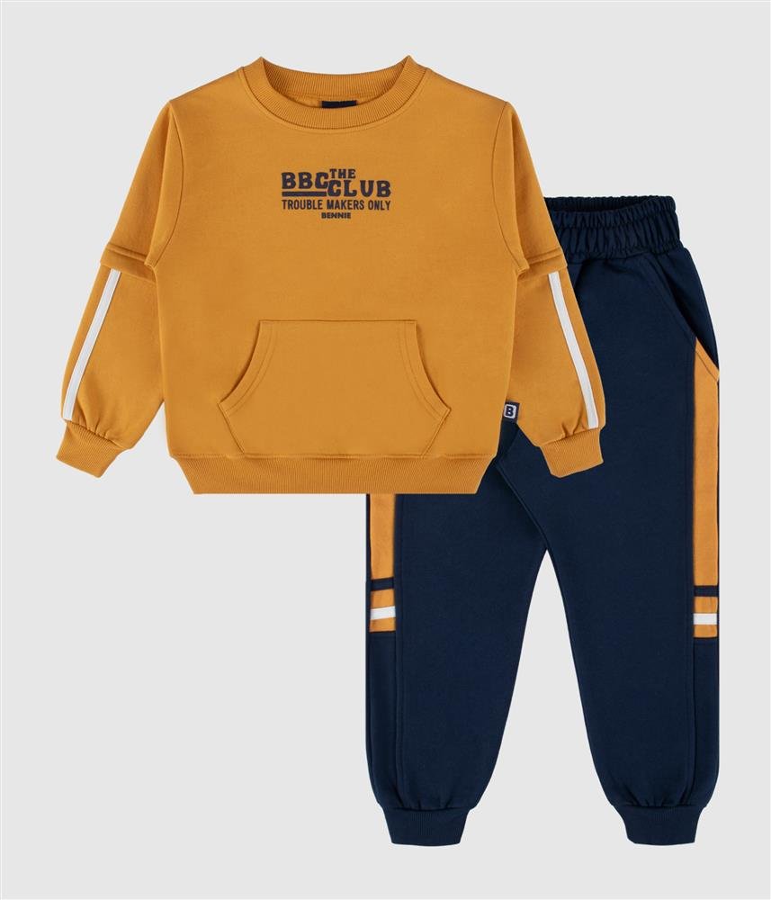 Conjunto em felpa cardada, perfeito para a rotina escolar.