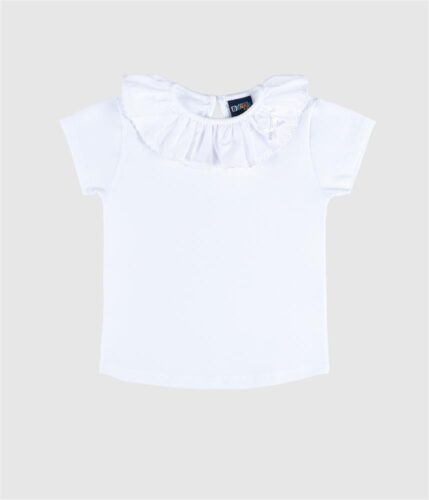 Nos tamanhos 12 e 18 meses, a t-shirt possui molas no ombro, facilitando o vestir e despir do bebé.