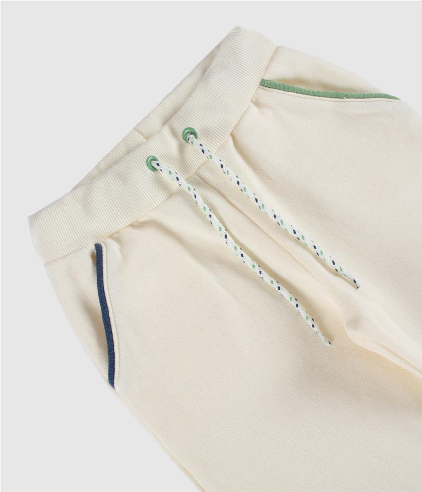 Elástico no cinto para melhorar conforto, que se permite ajustar no dia a dia de muita brincadeira. Cordão tricolor ajustável.
