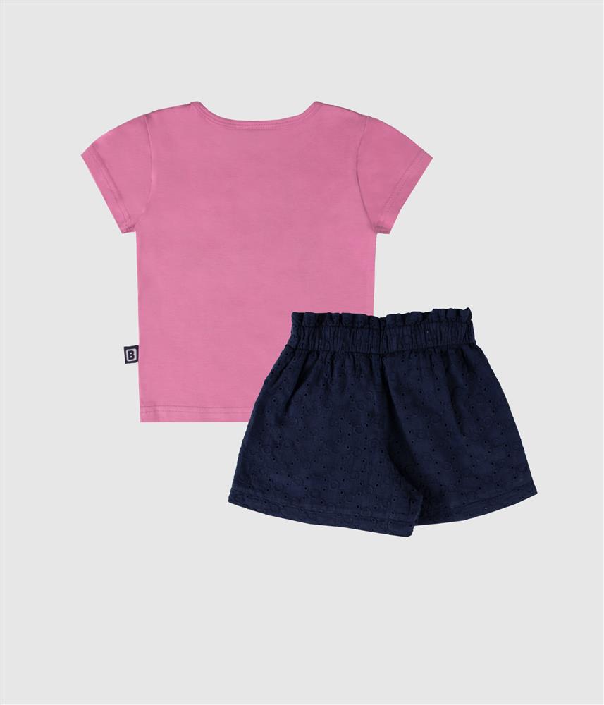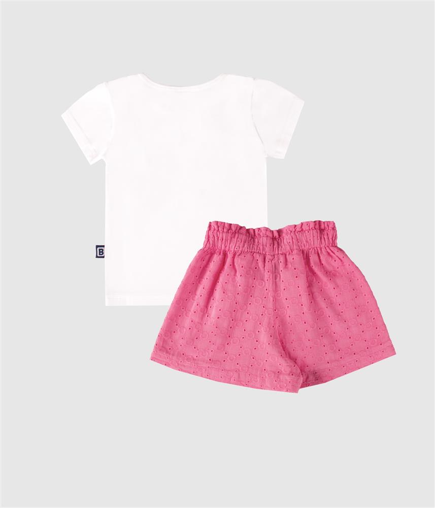 Este conjunto de duas peças é a escolha ideal para os dias quentes, garantindo conforto total para a pele do seu bebé. A t-shirt em jersey de algodão suave inclui molas, nos tamanhos 6/12/18 meses, no ombro para vestir facilmente e apresenta um doce bordado na frente. Os calções em bordado inglês, com padrões florais vazados, garantem frescura e liberdade de movimento. Com cintura elástica e bolsos práticos, é o conjunto perfeito para garantir um look fresco, cómodo e cheio de ternura em qualquer ocasião de Primavera Verão.