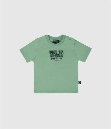 T-shirt em jersey leve e macio, com cores vibrantes e alegres. O estampado na frente é simples e discreto.Nas costas, a diversão ganha vida com um estampado colorido e vistoso, estilo banda desenhada, que conta a história de uma corrida pré-histórica: “READY, SET, RIDE”, “VROOM” e “FINISH”, com direito a um dinossauro motociclista de capacete.