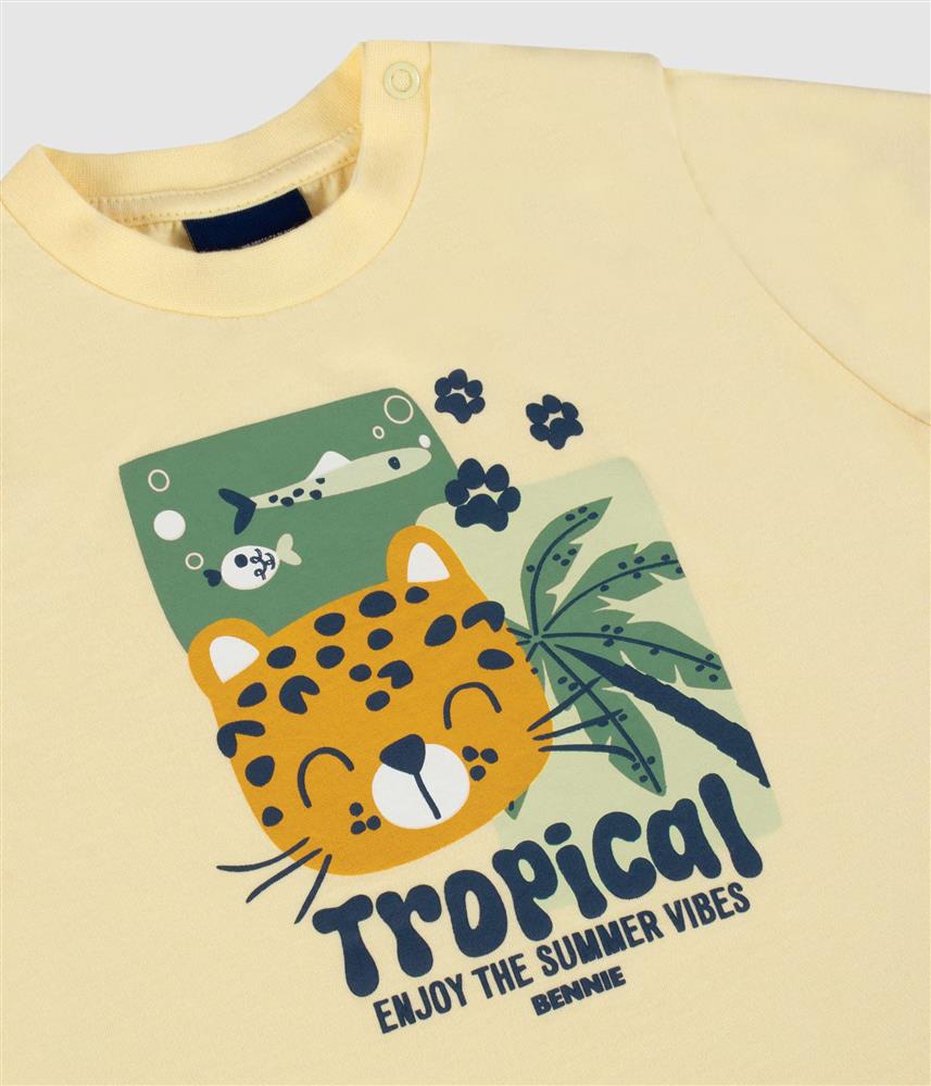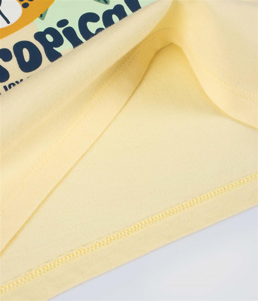 O estampado na frente é colorido e divertido, perfeito para os pequenos amantes da natureza.