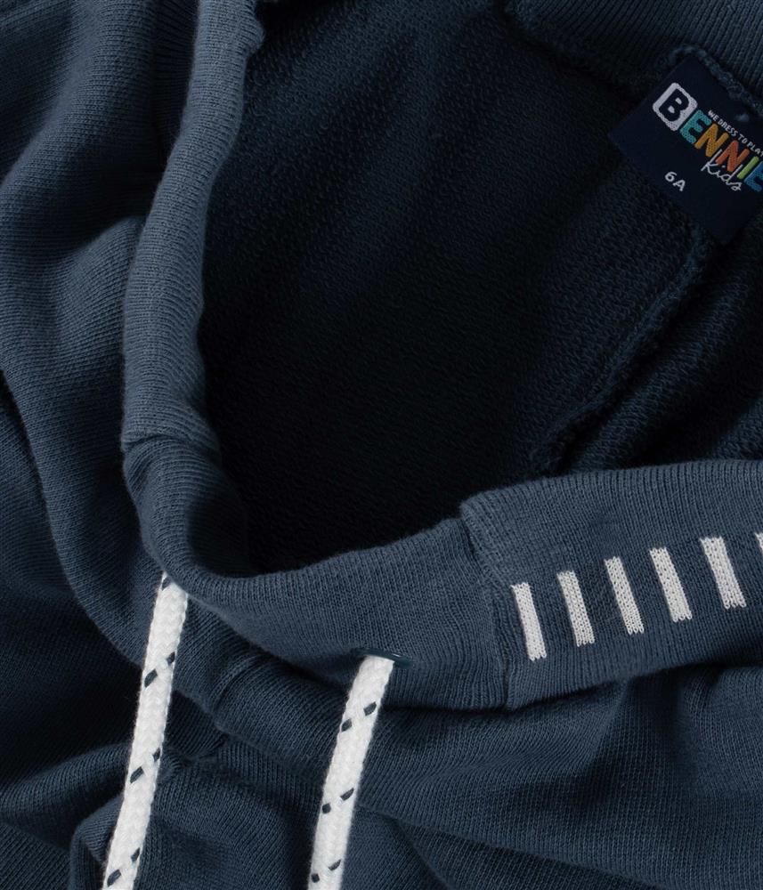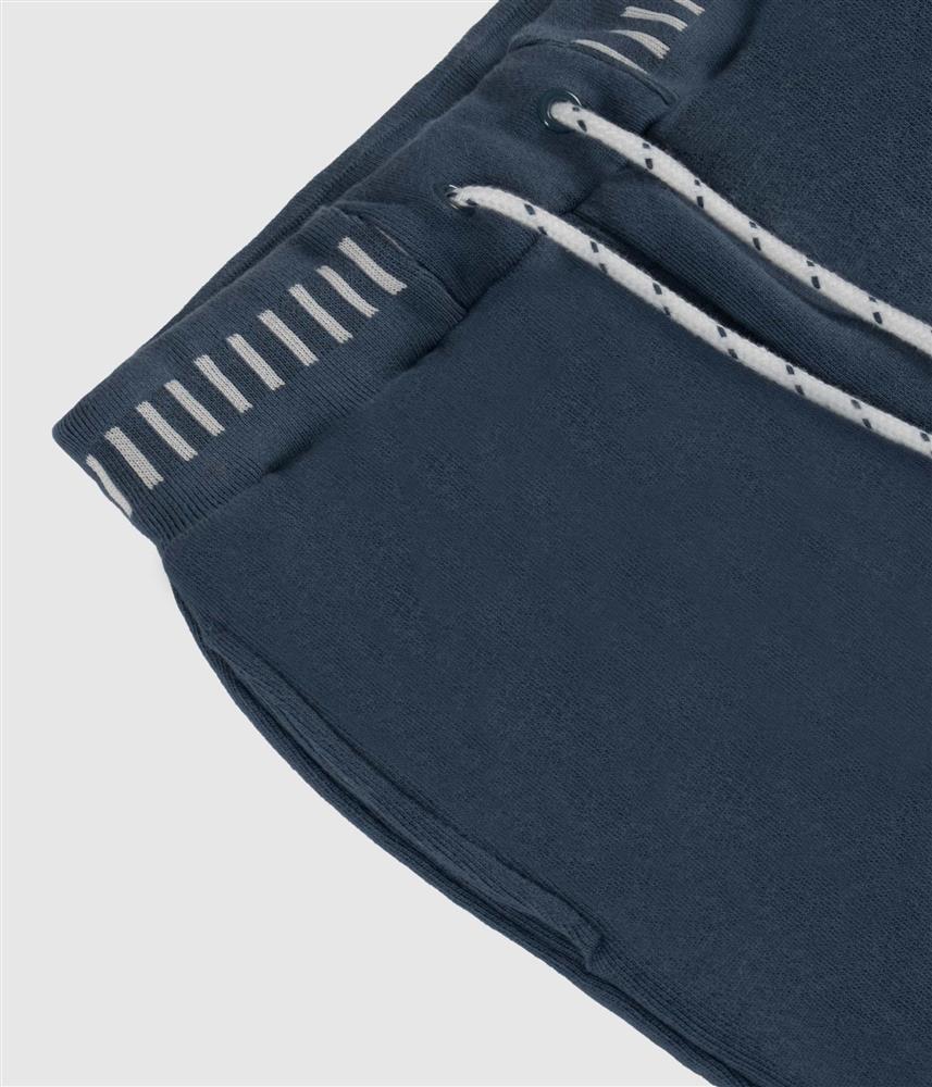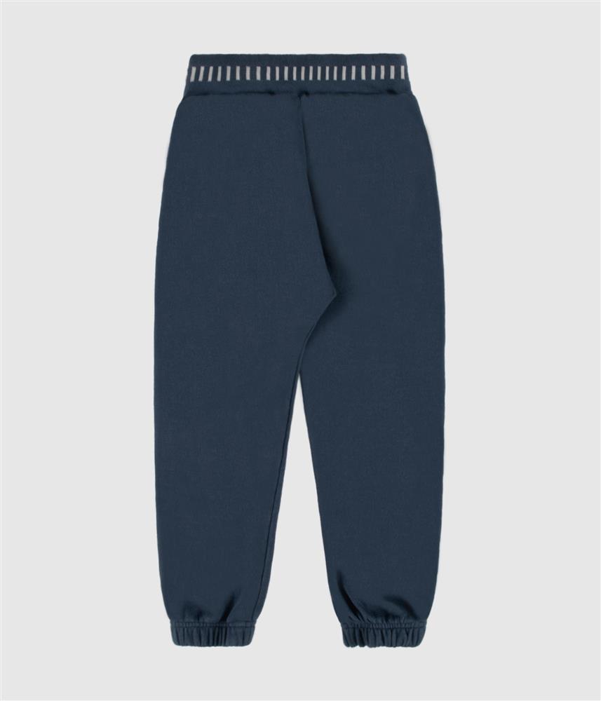 Calça em felpa, com tira-reta a imitar as paliçadas de madeira das praias.
