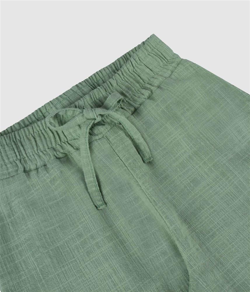 Calça em tecido fantasia, leve e fresco, com textura irresistivel ao toque.
