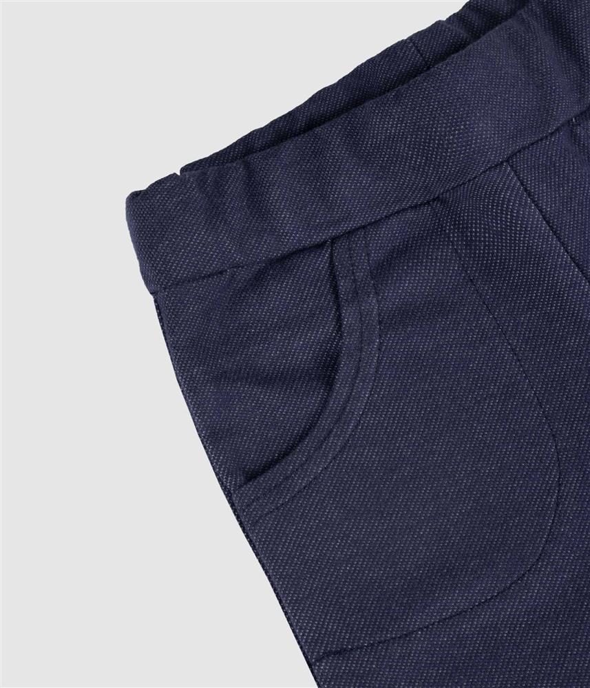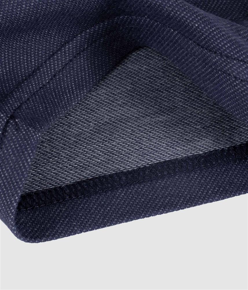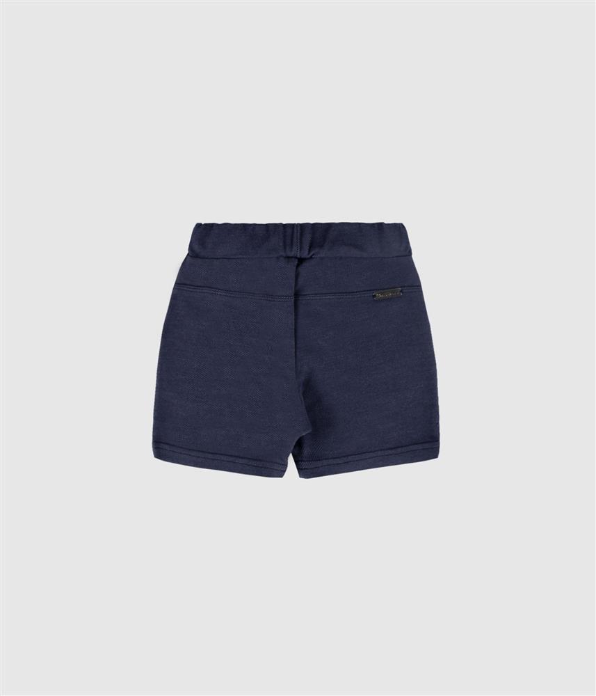 Calção curto em jacquard, emitação de ganga.