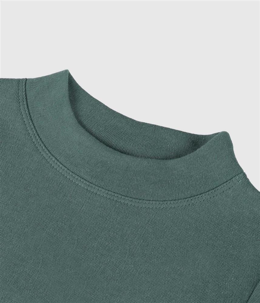 A meia gola e o seu interior cardado impede o frio de entrar.