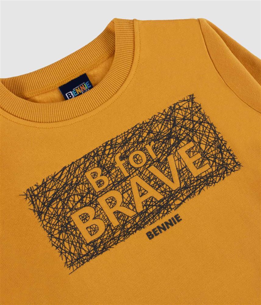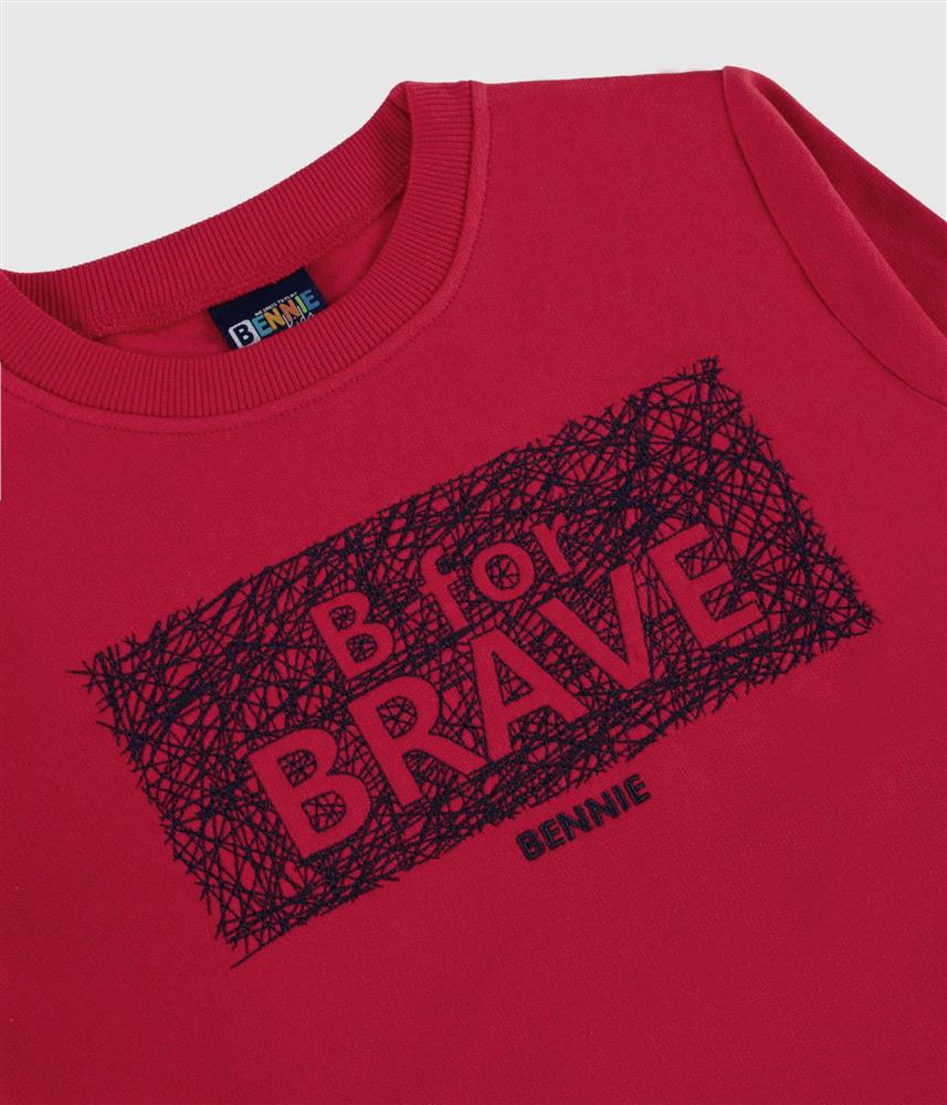 O bordado monocromático com uma técnica única na frente da sweatshirt é simples e com personalidade, feito para encorajar os nossos pequenos hérois no seu dia a dia.