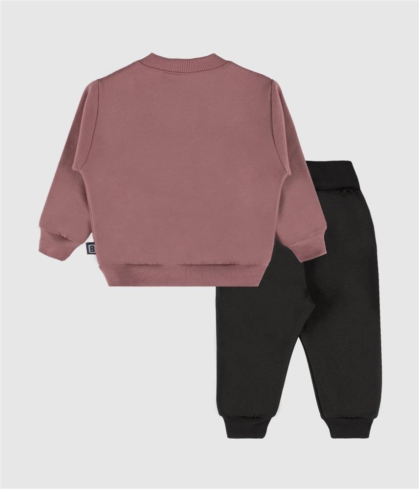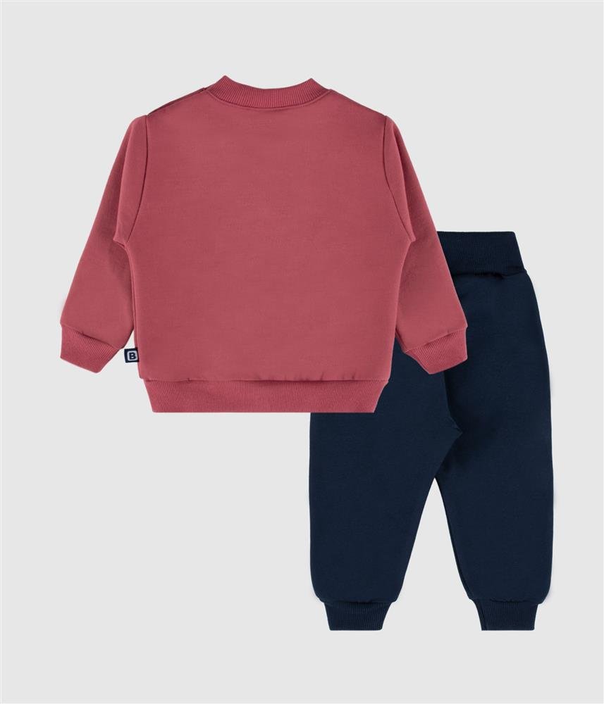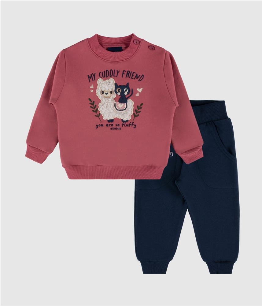 Um conjunto em felpa cardada, ideal para a rotina escolar das mais pequenas.