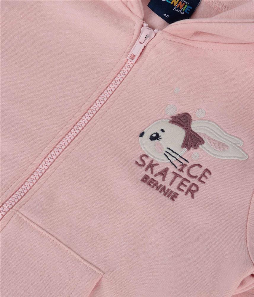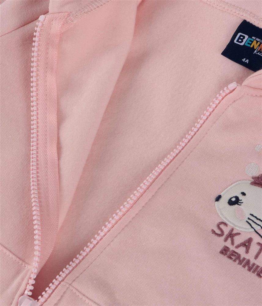 O bordado no peito do casaco é simples e delicado. As suas cores suaves permitem combinações mimosas com as camisolas favoritas.