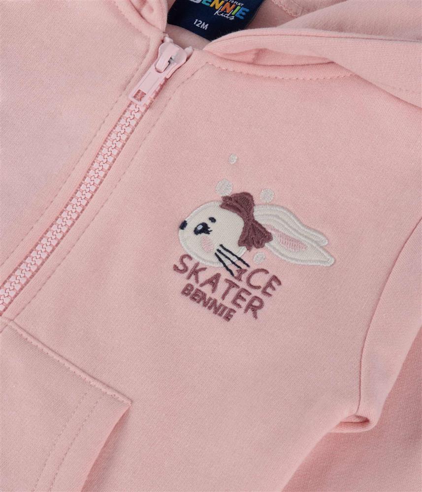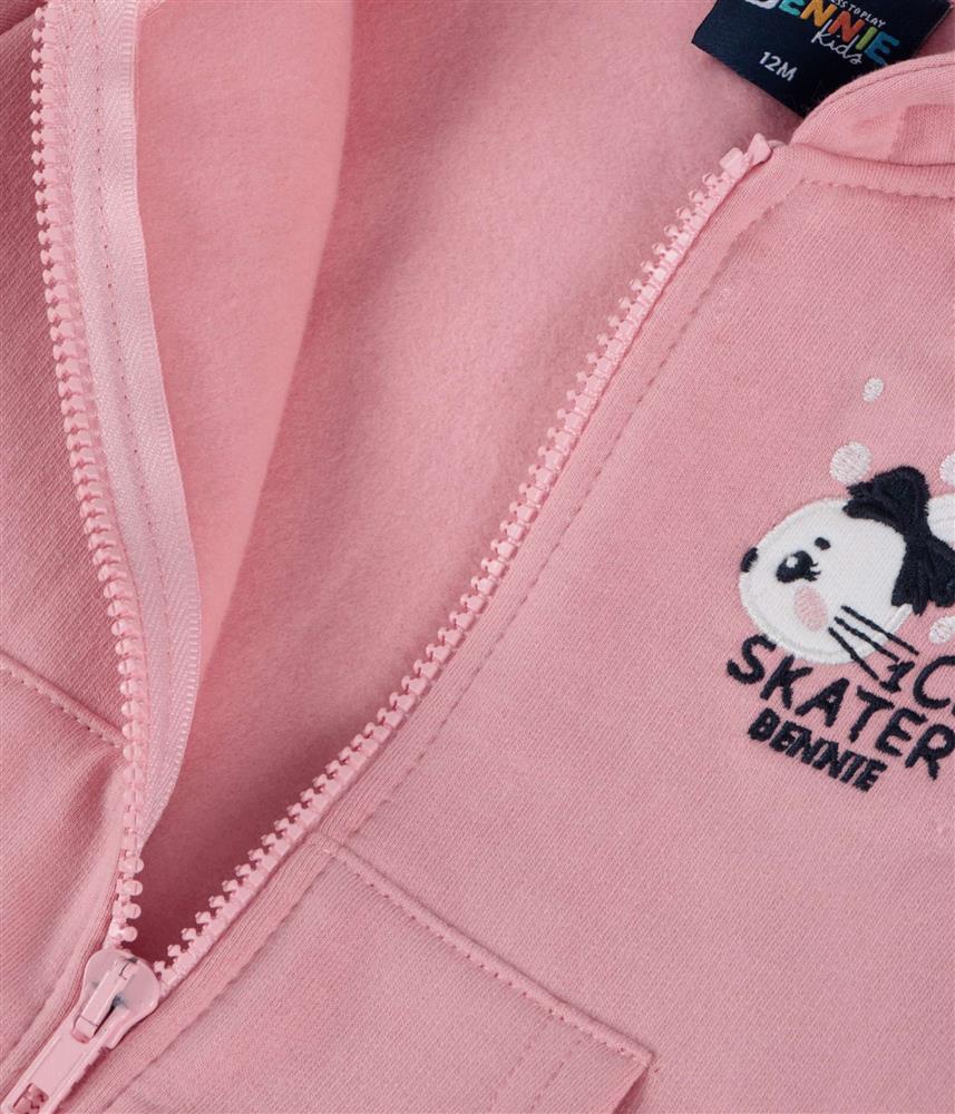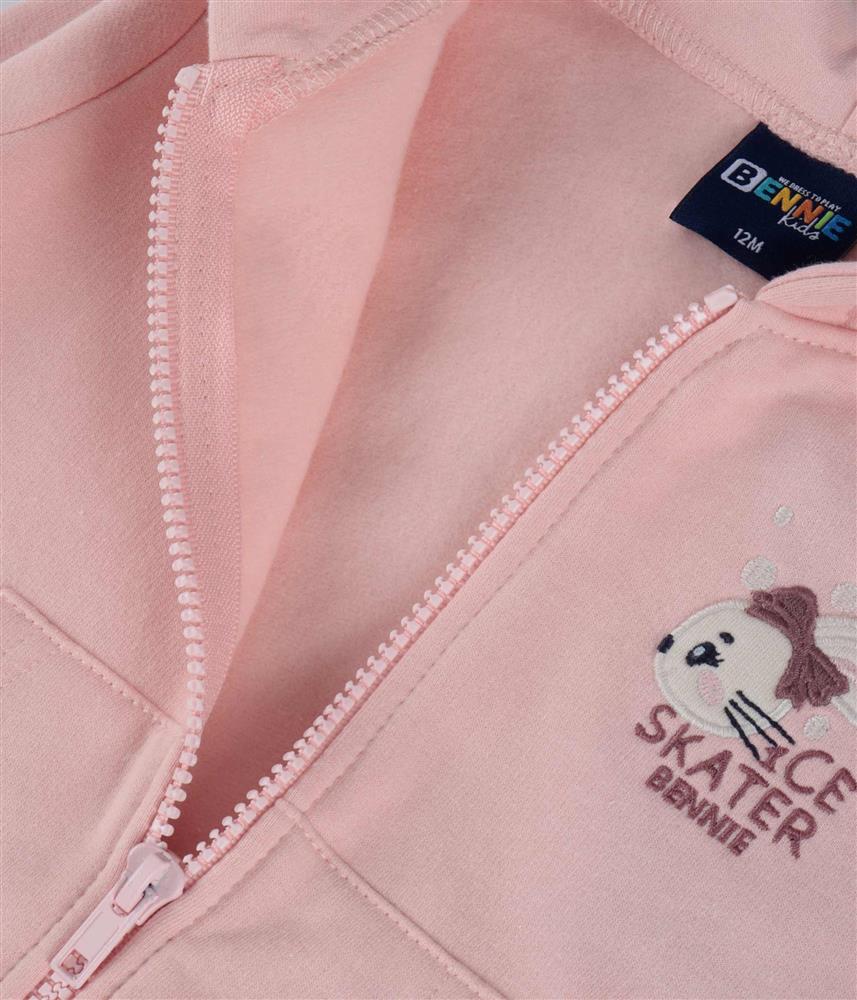 O bordado no peito do casaco é simples e delicado. As suas cores suaves permitem combinações mimosas com as camisolas favoritas.