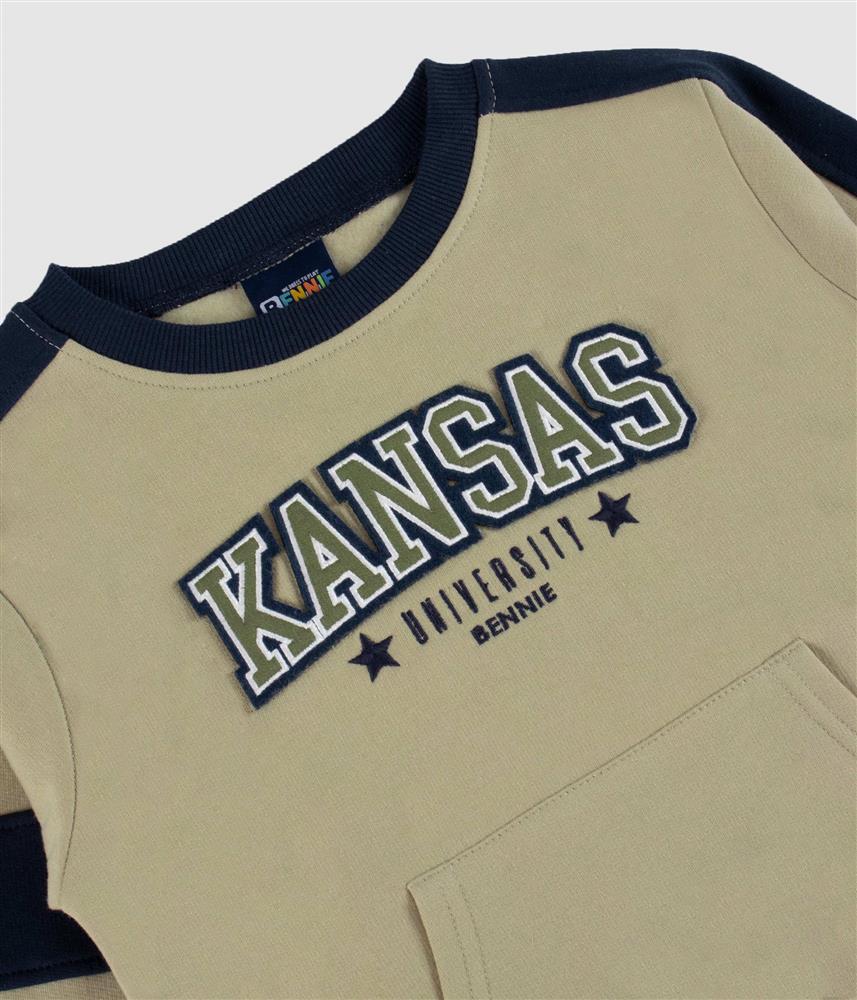 Na sweatshirt, o bordado na frente é simples e discreto, tal e qual eles adoram. Os encaixes em contraste em cima e nas mangas dão personalidade à peça.