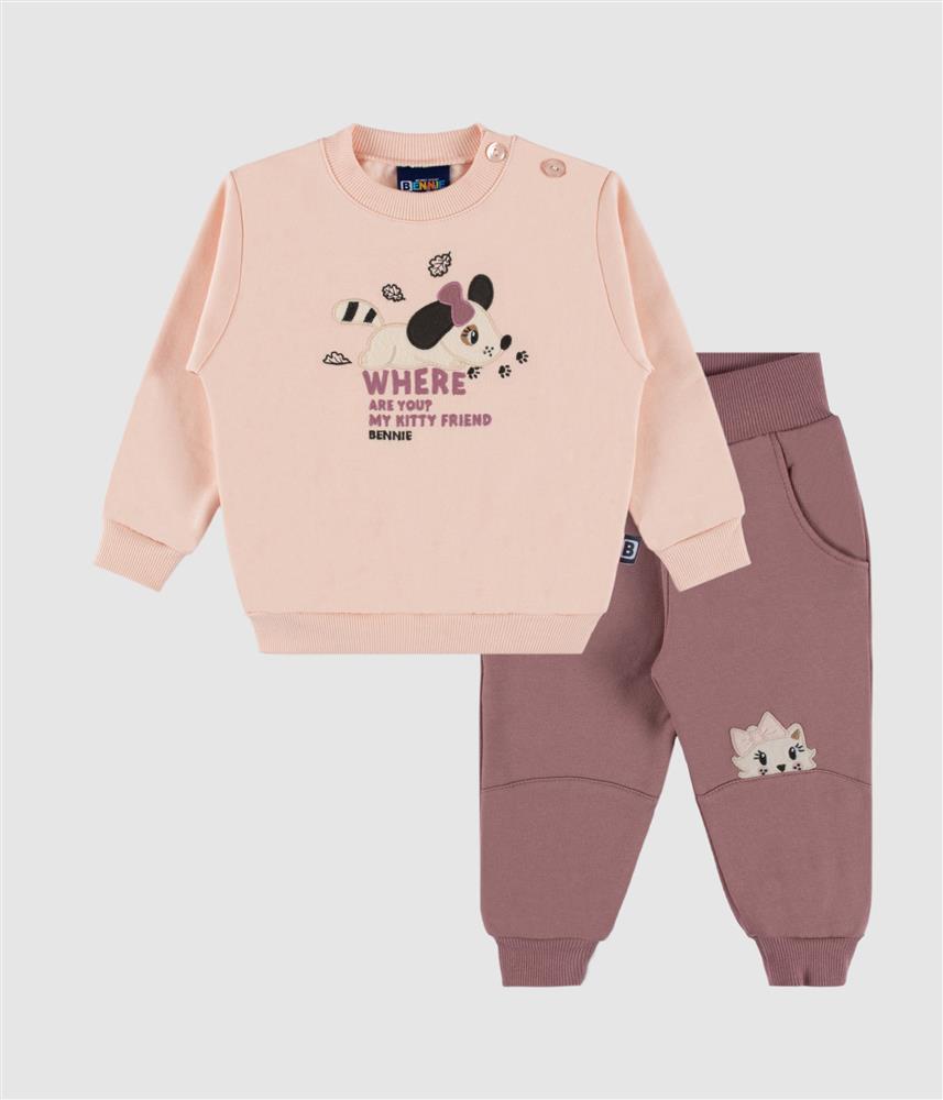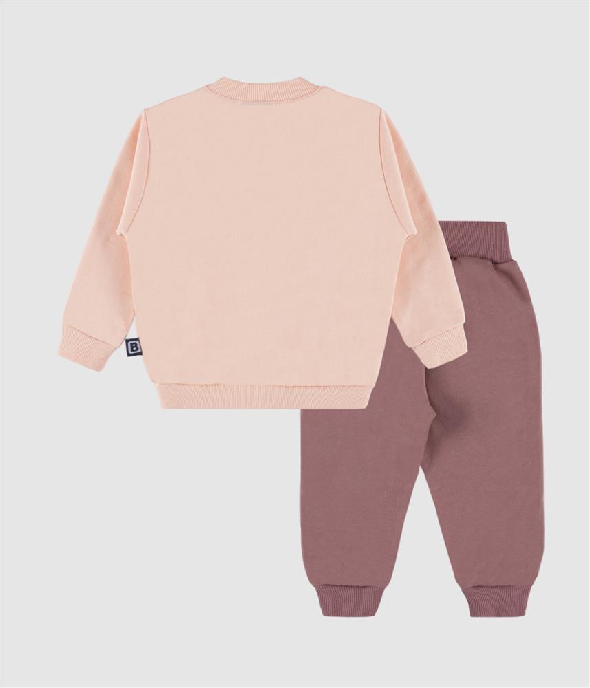 Conjunto de sweatshirt e calça, em felpa cardada.