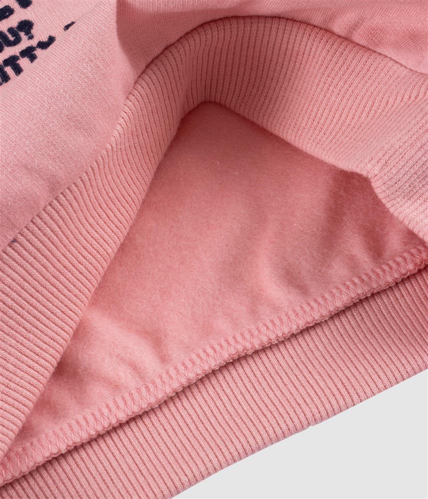 O bordado na frente da sweatshirt é engraçado e amoroso. Na calça, o bordado que completa o design da sweatshirt e torna o conjunto divertido.