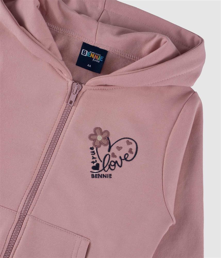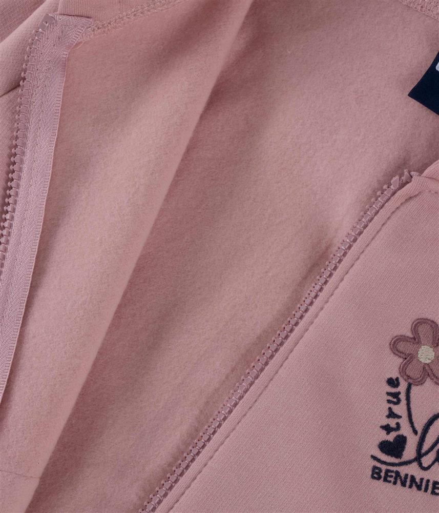 Na frente do casaco um fecho central e bolsos que tornam a peça prática e confortável. O bordado do peito é discreto e amoroso.