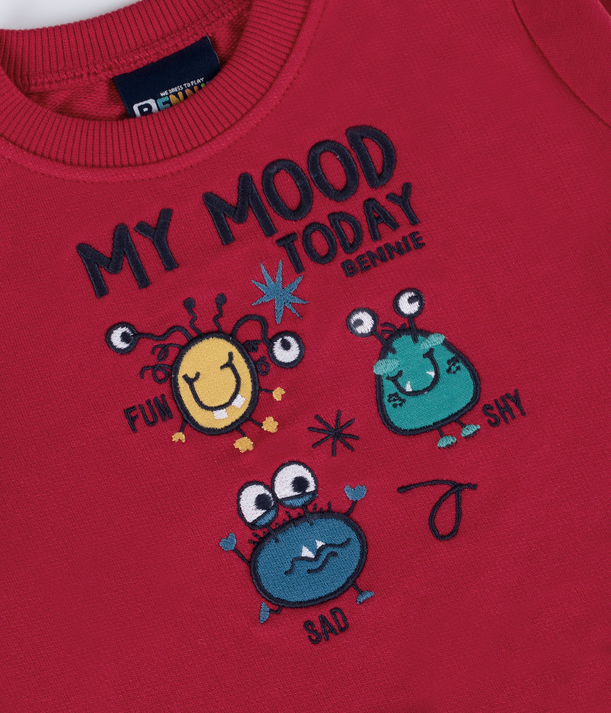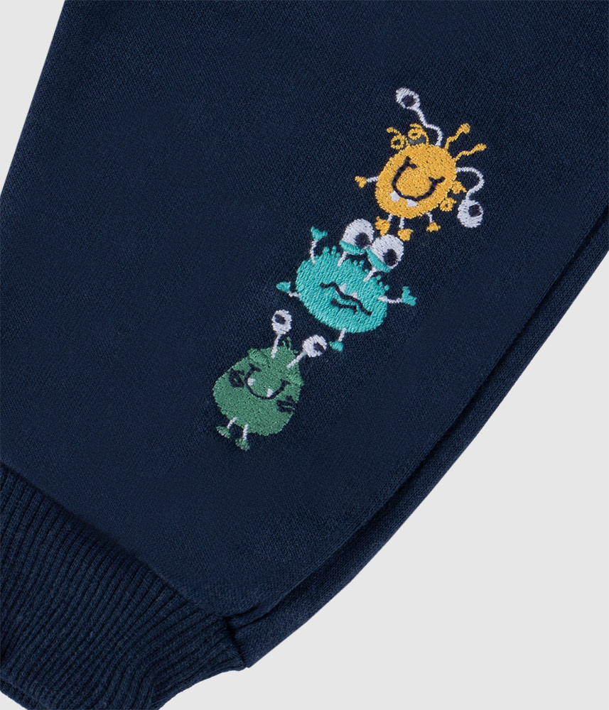 A frente bordada da sweatshirt é engraçada e colorida. Na calça, o bordado em baixo completa o conjunto de forma divertida.