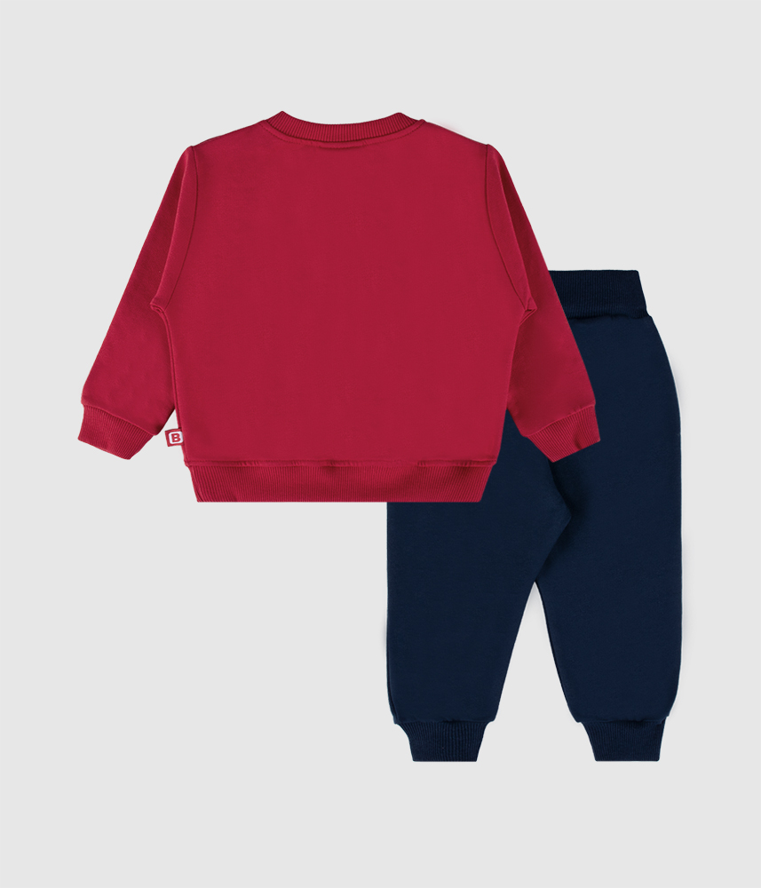 Conjunto de sweatshirt e calça, em felpa leve e macia.