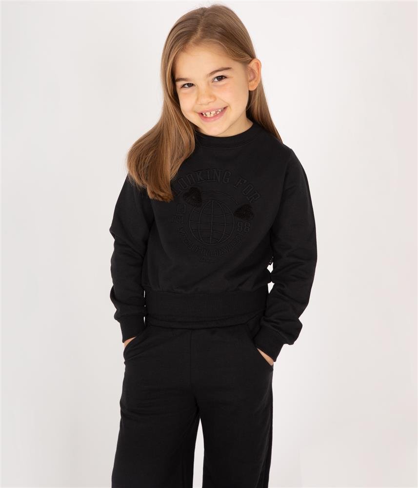 Na frente da sweatshirt um bordado à cor simples e com pontos distintos. Discreto e suave.