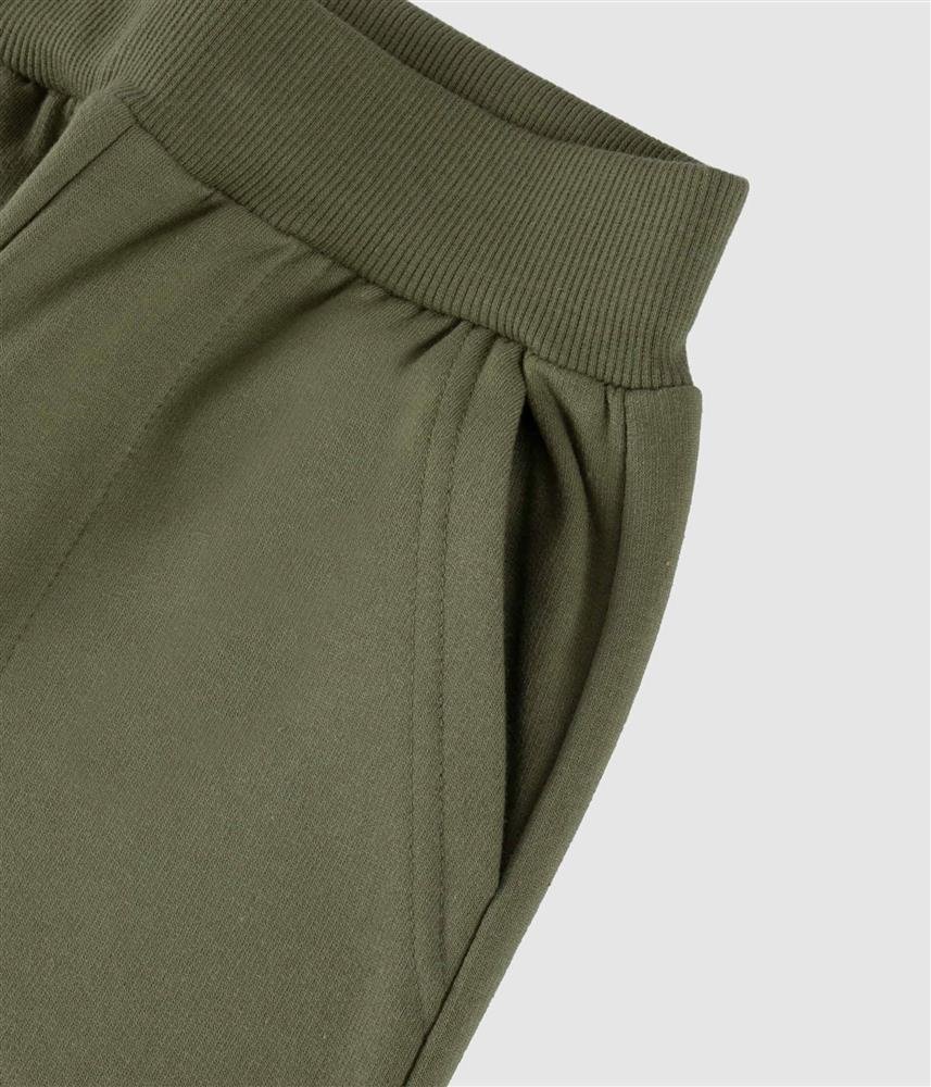 O elástico no cinto é prático e confortável. Bolsos na frente.