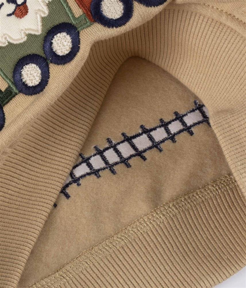 O conjunto de bordados entre a frente e a costa tornam a peça divertida e colorida.