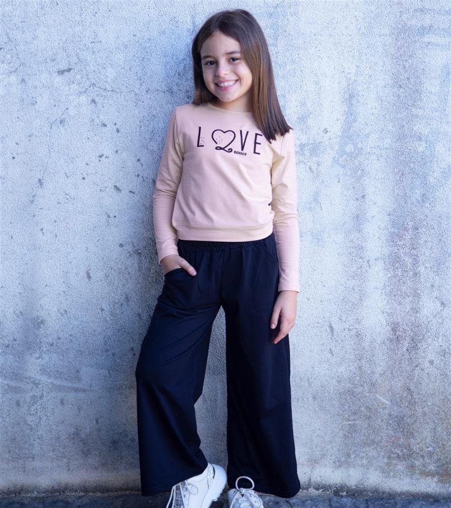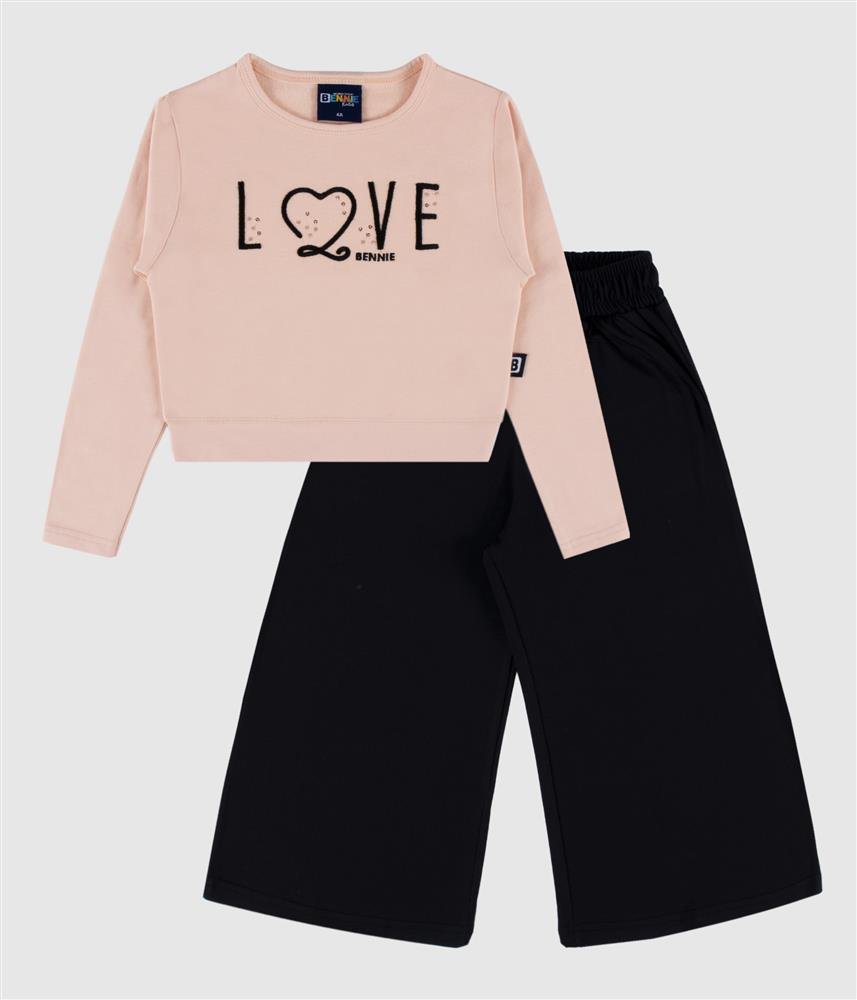 Conjunto de camisola curta e calça wide leg, em jersey cardado macio.