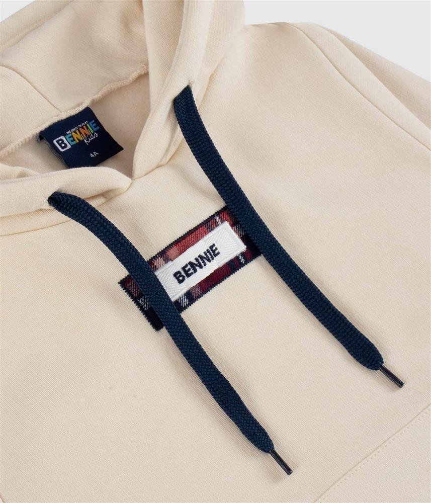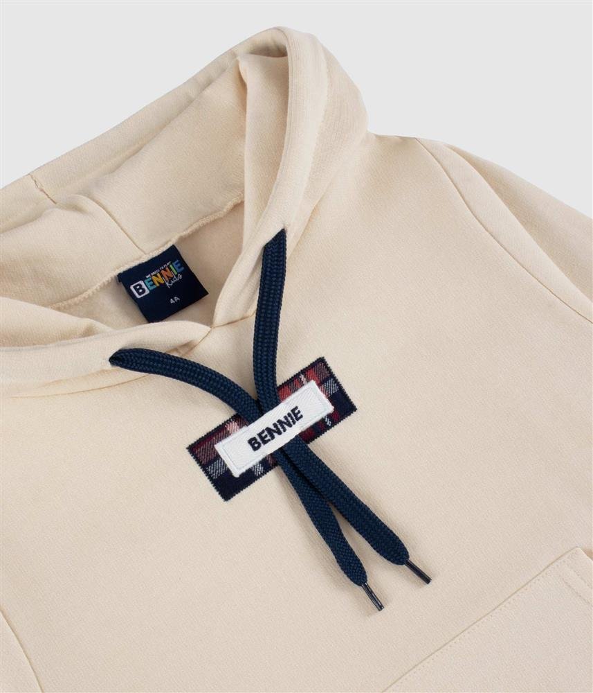 Hoodie em felpa cardada, com cordão ajustável no capuz.