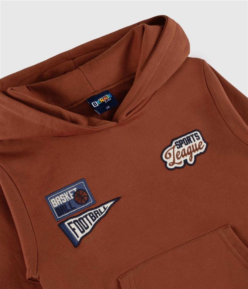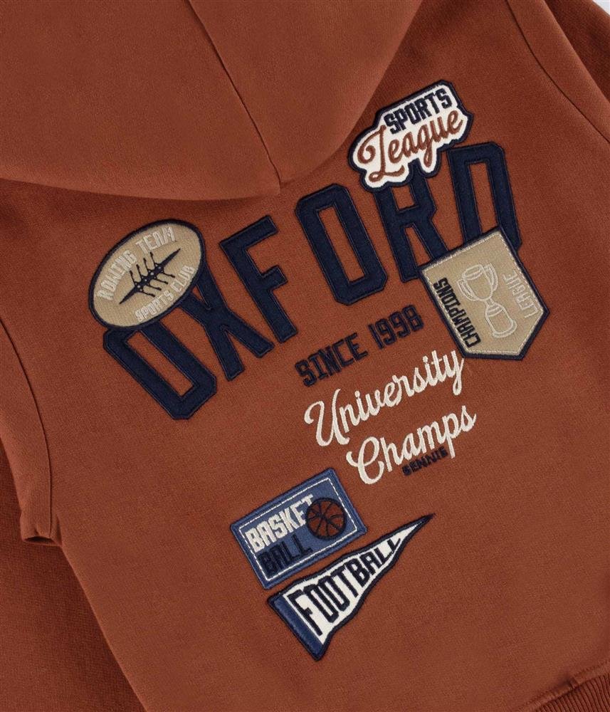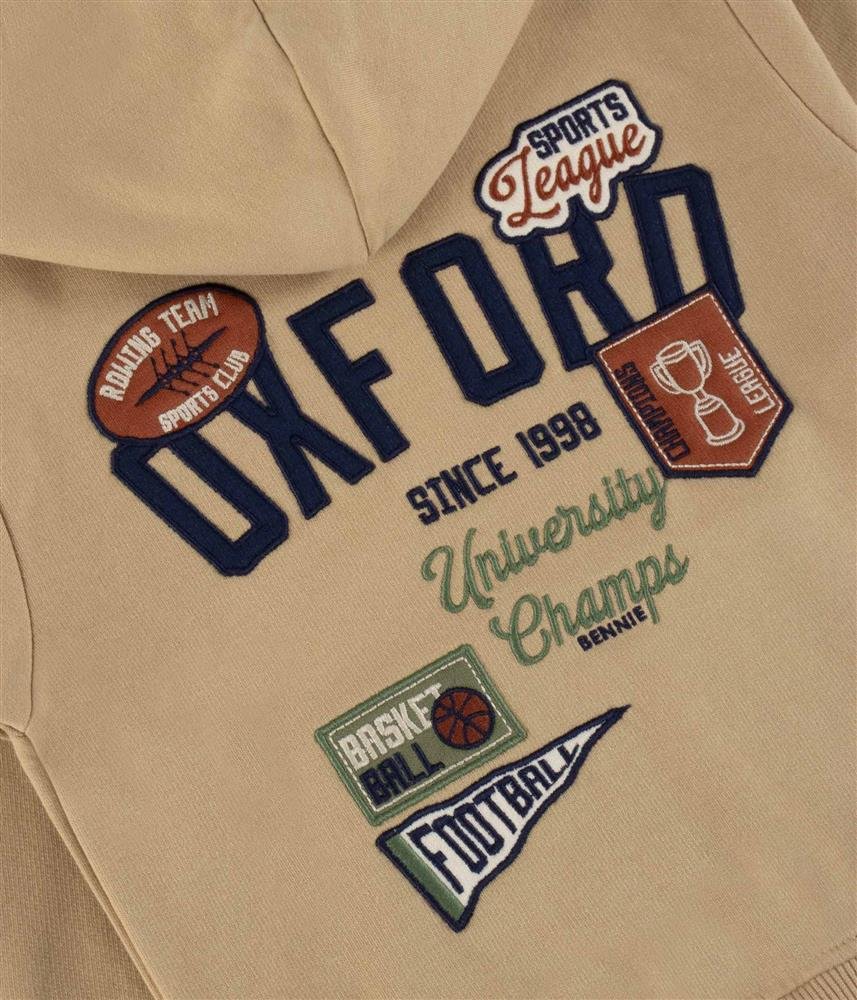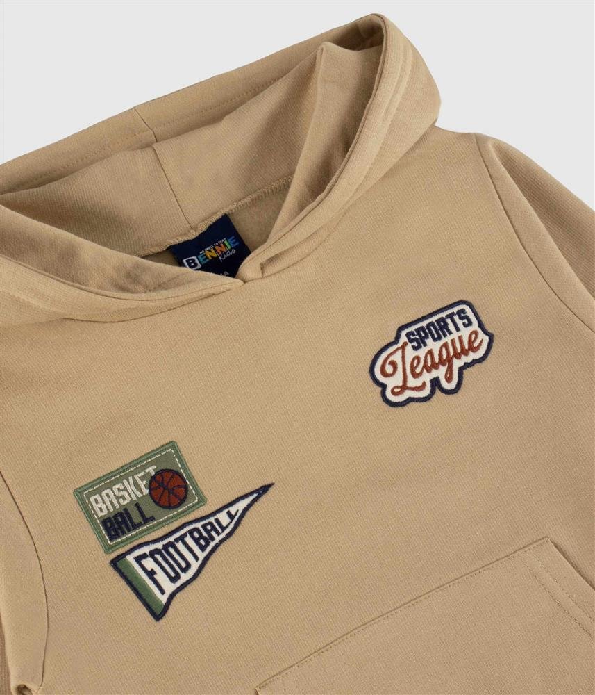 Com a combinação perfeita de bordados e badges, tons neutros e fáceis de combinar, este Hoodie em felpa cardada promete fazer furor!