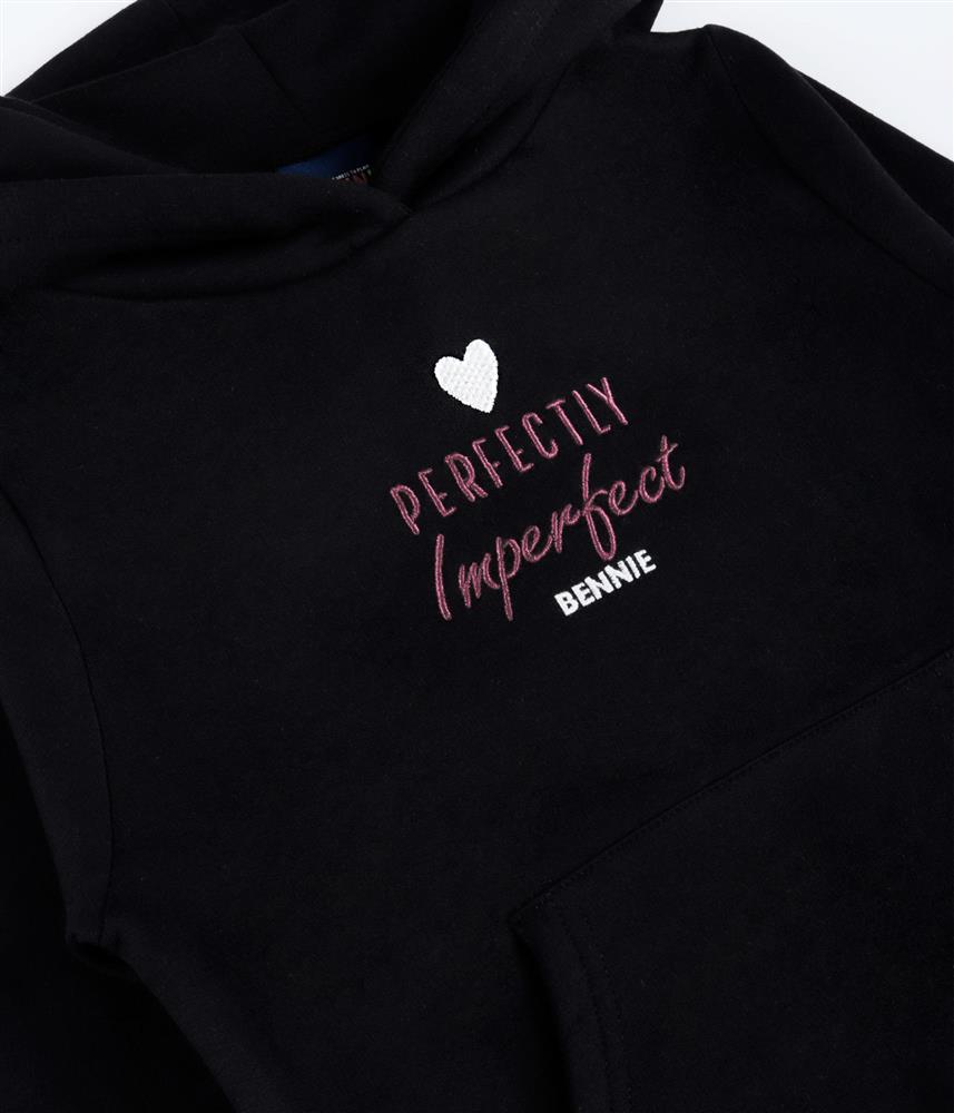 O bolso canguru é prático e o capuz proporciona o conforto que ela deseja.
