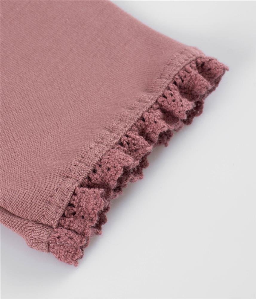 Com uma renda delicada no fundo e o tecido em jersey cardado, conforto e estilo estão lado a lado.
