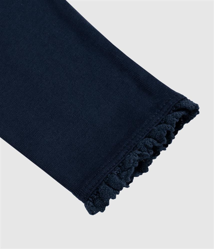 Legging em jersey com um toque de elastano, permitindo melhor conforto para as brincadeiras do dia a dia.