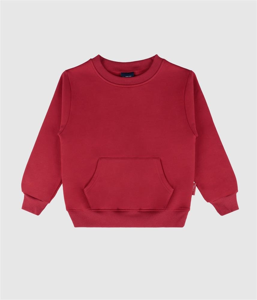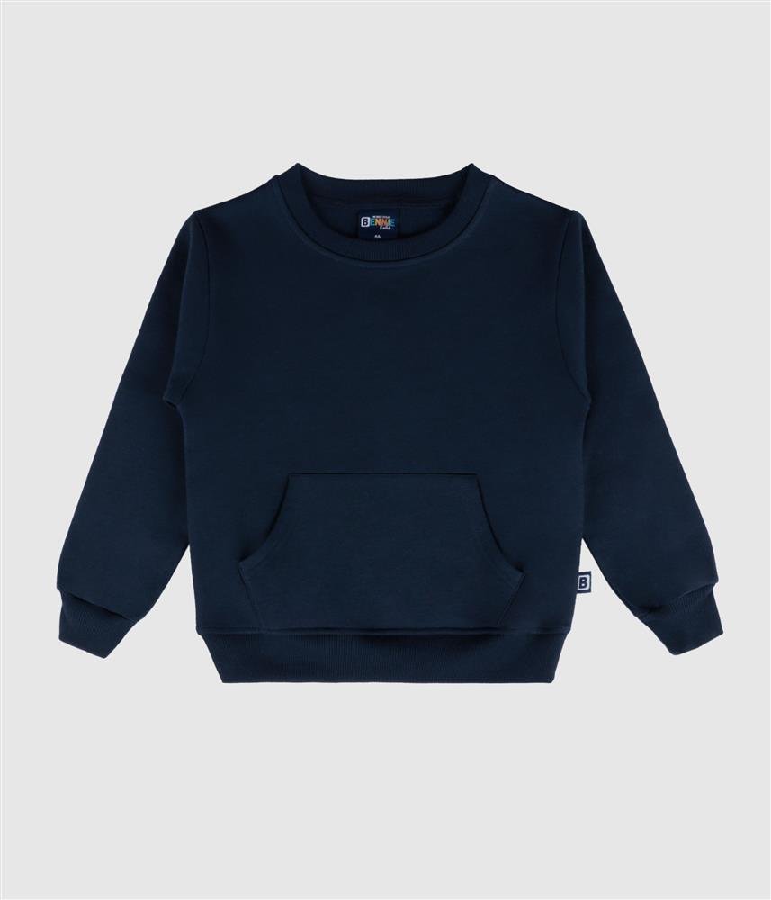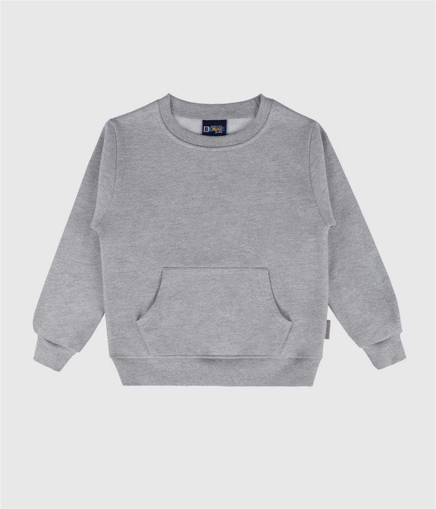 A gola arredondada e o bolso canguru proporcionam conforto.