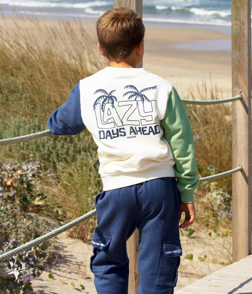 Sweatshirt em felpa leve e macia, perfeita para combinar com a T-Shirt Lazy e criar o look mais cativante deste Verão.