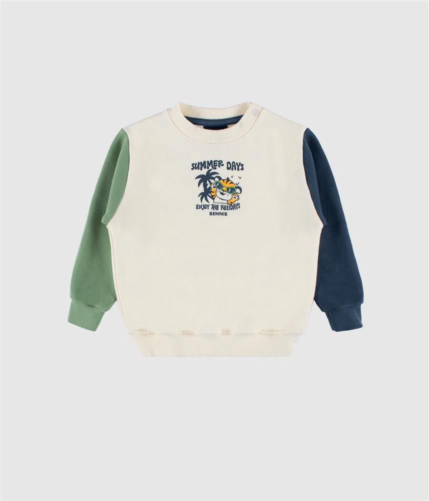 As mangas em contraste completam a sweatshirt de forma harmoniosa e colorida.