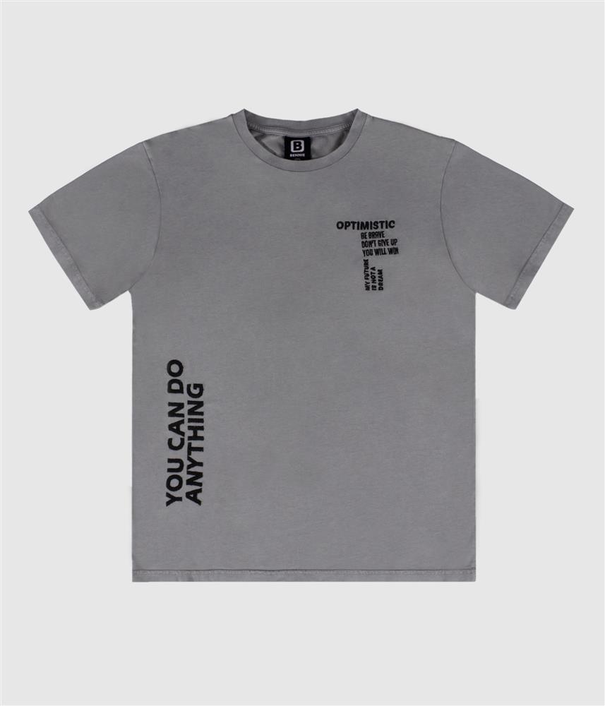T-Shirt em fade out, bordada na frente com mensagens fortes.
