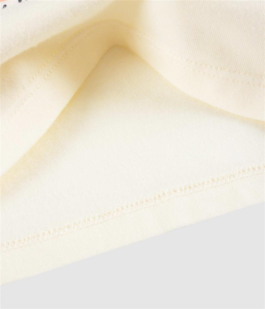 Na frente, o estampado é divertido e colorido… Perfeito para combinar facilmente com qualquer peça.