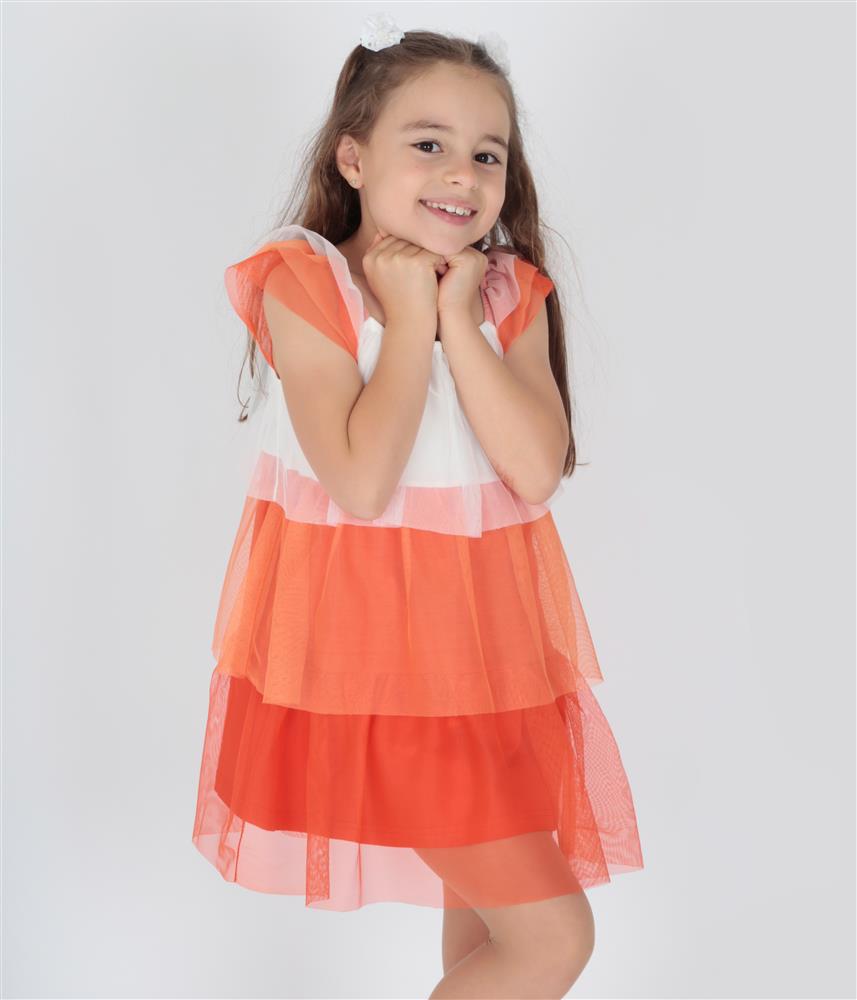 Vestido infantil em tule, leve e fluido, perfeito para ocasiões especiais e dias festivos.